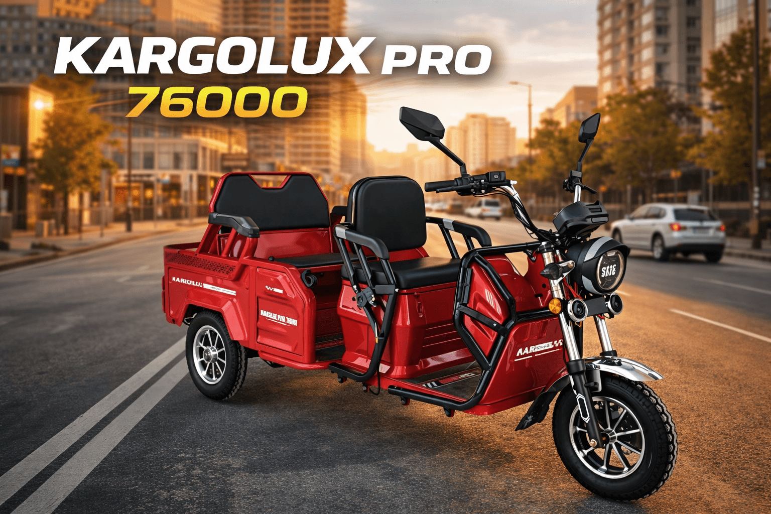 Kargolux Pro 76000, kompakt kasalı tasarımıyla şehir içinde pratik taşıma kolaylığı sunar. Dengeli üç teker yapısı ve şık duruşuyla her sürüşte güven veren bir deneyim sağlar.